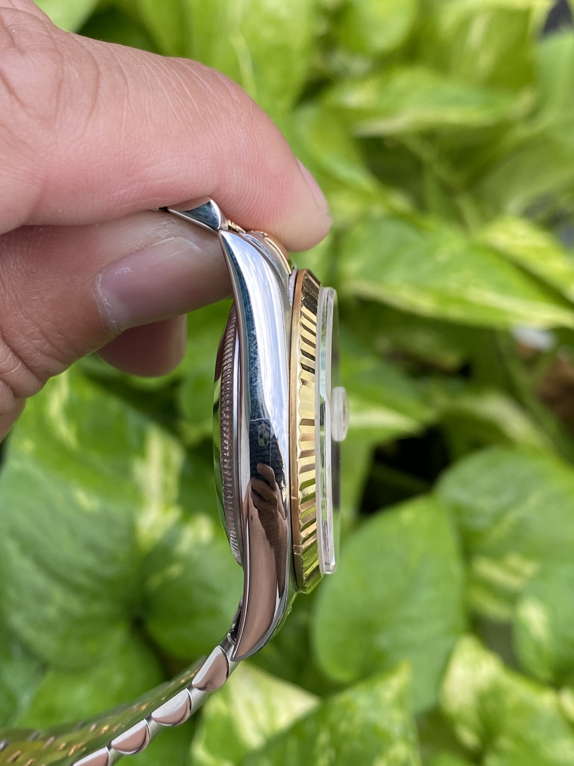• Với thiết kế kết hợp giữa thép vàng 18k, đi cùng bộ niềng khía (fluted bezel) đặc trưng, tạo nên vẻ sang trọng nhưng vẫn rất dễ đeo hằng ngày.